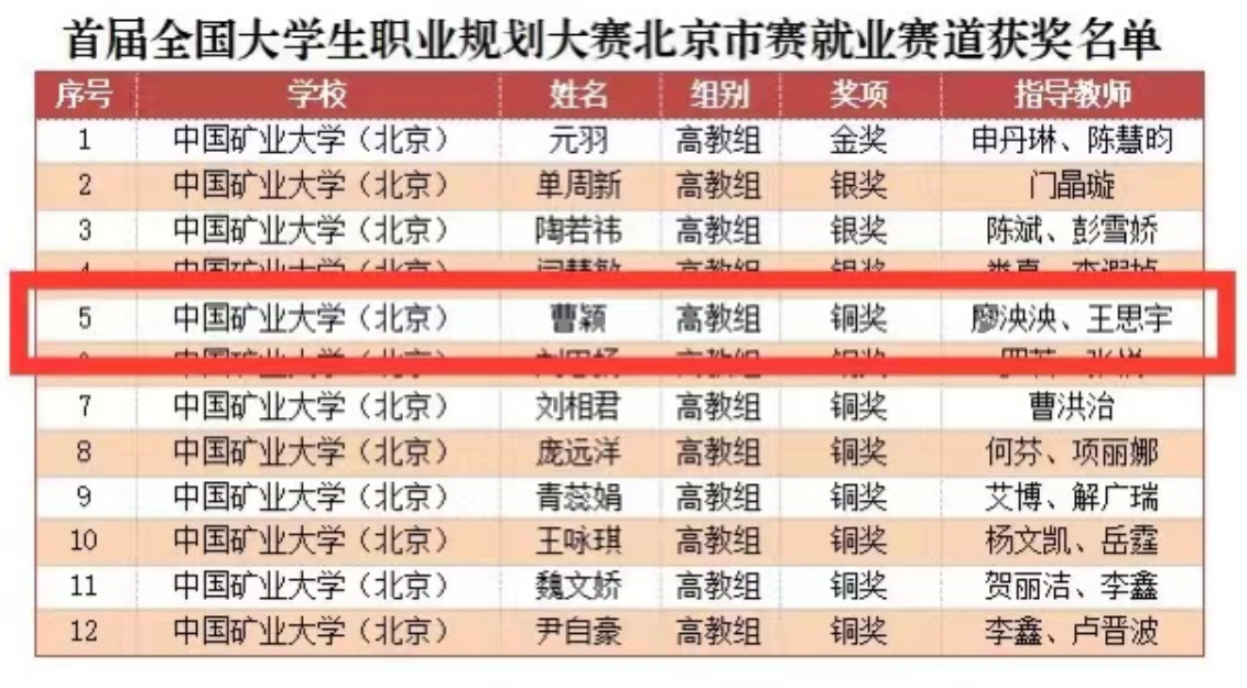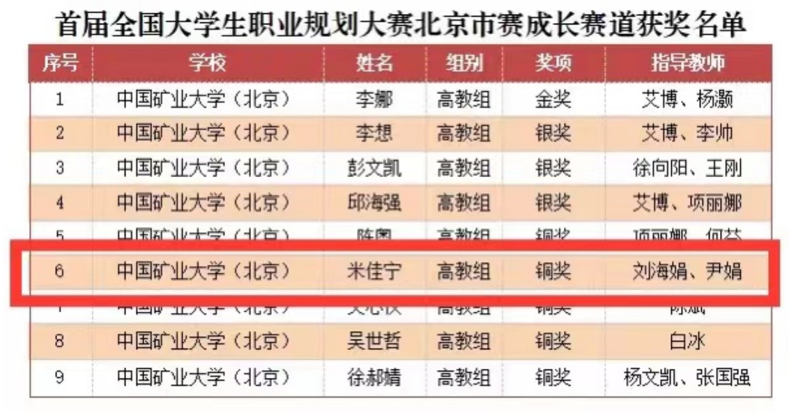 在首届全国大学生职业规划大赛北京市赛中,化环学院2名学子分别夺得成长赛道铜奖与就业赛道铜奖。