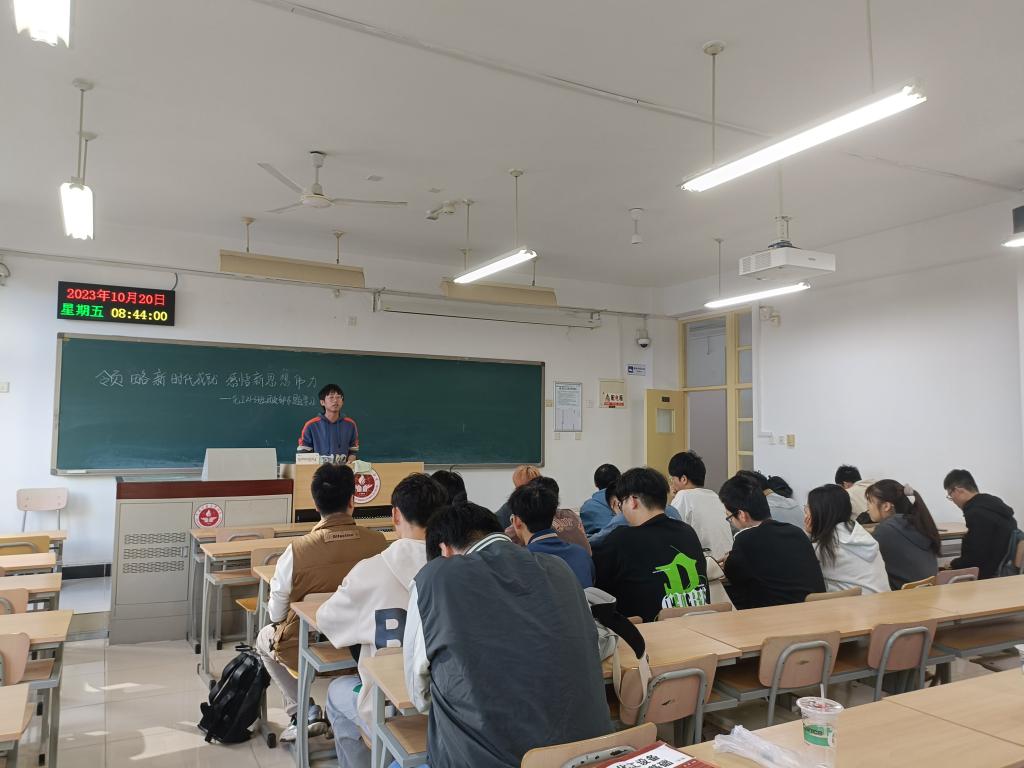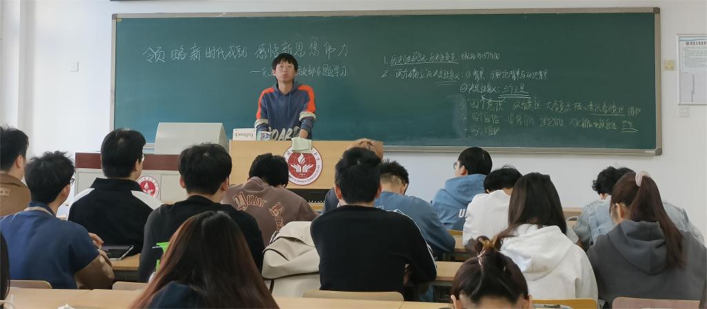 2023年09月28号,为了学习感悟在以习近平同志为核心的党中央坚强领导下、在习近平新时代中国特色社会主义思想科学指引下,新时代党和国家事业取得的历史性成就、发生的历史性变革,深刻领悟“两个确立”的决定性意义,增强“四个意识”、坚定“四个自信”、做到“两个维护”,21级化工三班团支书胡明伟带领全班同学深入学习习近平新时代中国特色社会主义思想的核心要义,并从五个方面来深入学习具体思想内涵。