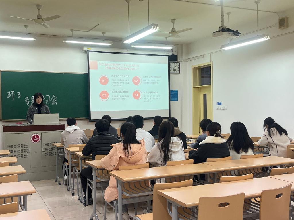 2023年11月13日,为了深入学习党的二十大关于全面建成社会主义现代化强国、以中国式现代化全面推进中华民族伟大复兴的战略部署和习近平总书记的相关重要论述,环工2022-3团支部开展了以“人间正道是沧桑——聚焦二十大,品味中国式现代化”为主题的团日活动。