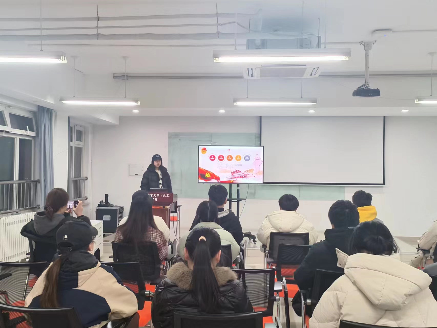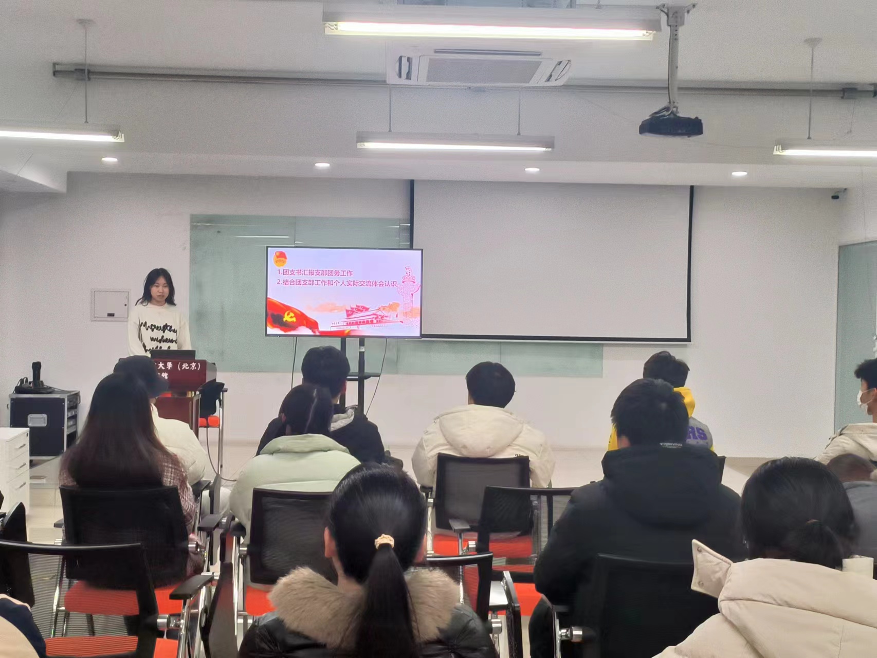经环工22-1班团支部共同商讨决定,会议从以下四部分展开,共唱团歌—支部团员对本年度的学习生活进行总结汇报,自我评价—团员相互之间学习借鉴,完成团员教育评议—团支书再次带领大家复习近期党和团的重要讲话和重要思想,并重温入团誓词。