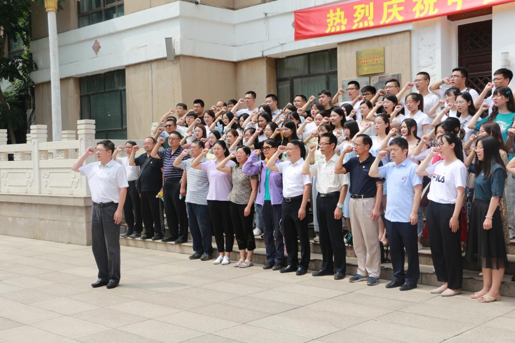 出发前,学院师生党员代表90余人在民族楼南广场开展重温入党誓词活动,学院党委书记赵亮领誓。