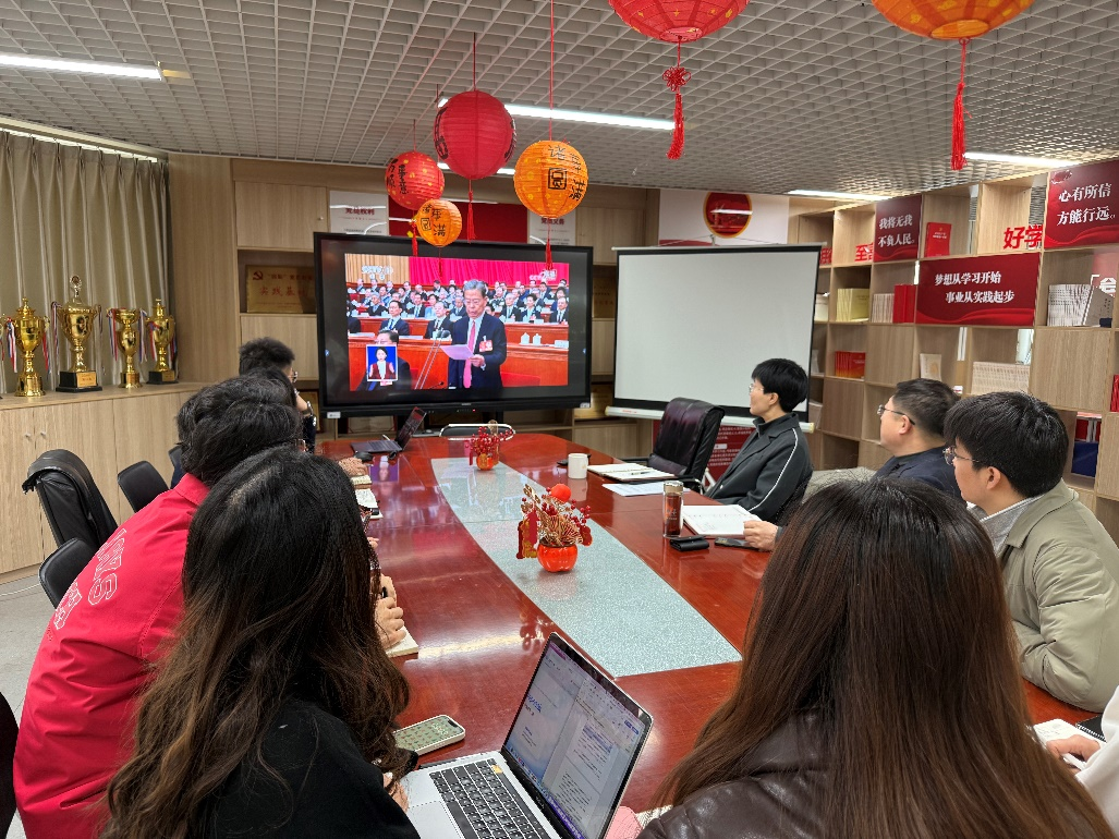 3月5日上午9点,第十四届全国人大三次会议在北京人民大会堂隆重召开。院办党支部全体党员于逸夫楼310集中观看开幕式直播,共同学习政府工作报告。
