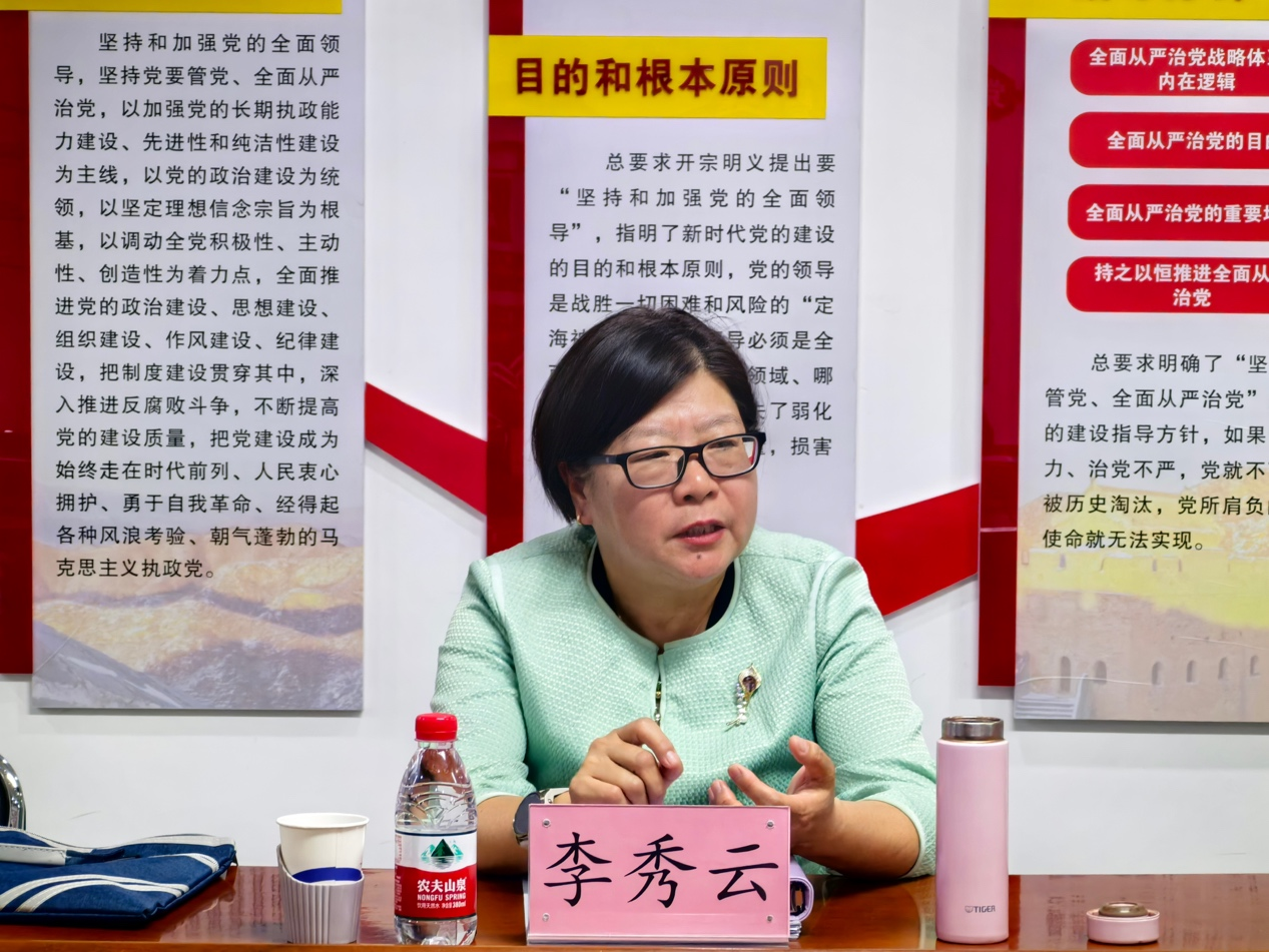 李秀云从中央八项规定精神的核心要义出发,系统阐释了其实施背景、重要意义及实践要求。她结合全面依法治国的历史进程,深入分析了新时代党的自我革命与全面从严治党的内在联系,强调从严治党关乎人心向背、民族兴衰和国家长治久安。此外,她还结合巡视工作成效,通过典型案例剖析,阐述了正风肃纪的制度成果,并就高校管理、教育强国建设、法治人才培养等议题提出建议。
