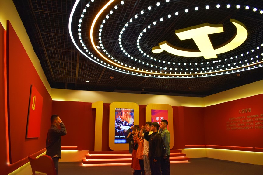 特展展厅庄重而震撼,前来参观的同志满怀敬意,依次有序进入展厅。宣传委员王紫晨结合展览为大家简略讲述中国共产党党史,介绍中国共产党的百年奋斗历程,强调今日幸福生活的来之不易,同学们认真聆听,积极互动,不由得增强了作为一名共产党员的荣誉感和责任感。