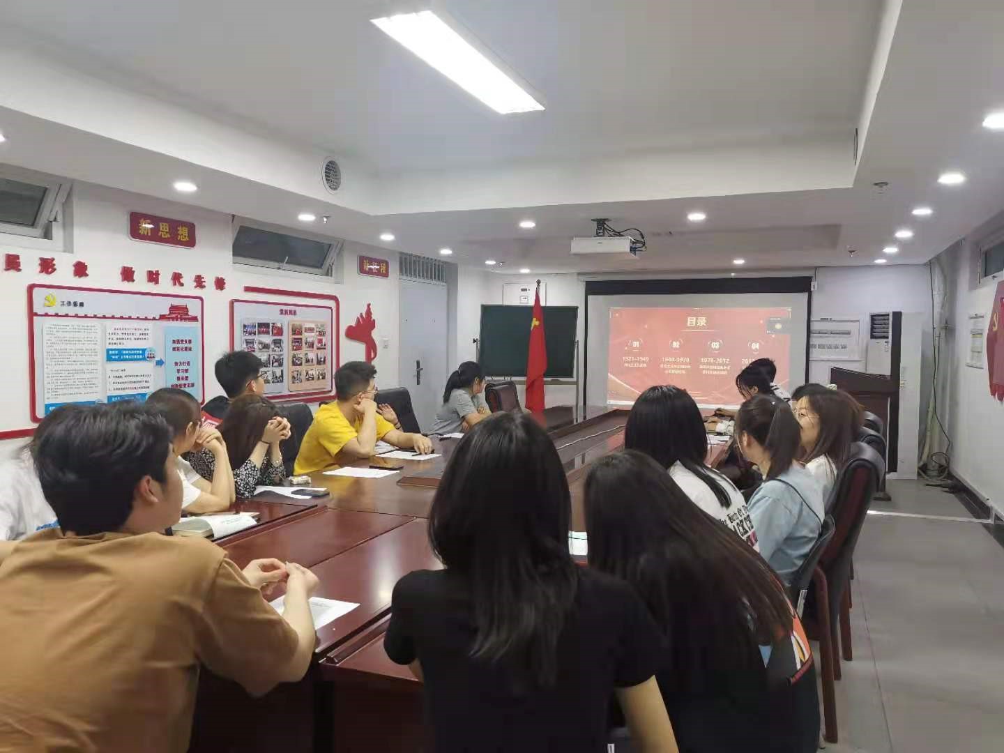 523日,硕19-2党支部在逸夫楼613开展建党100周年党史学习教育。党支部书记史鹏飞为全体党员讲授《中国共产党百年辉煌》党史学习教育专题党课,全体党员认真聆听。