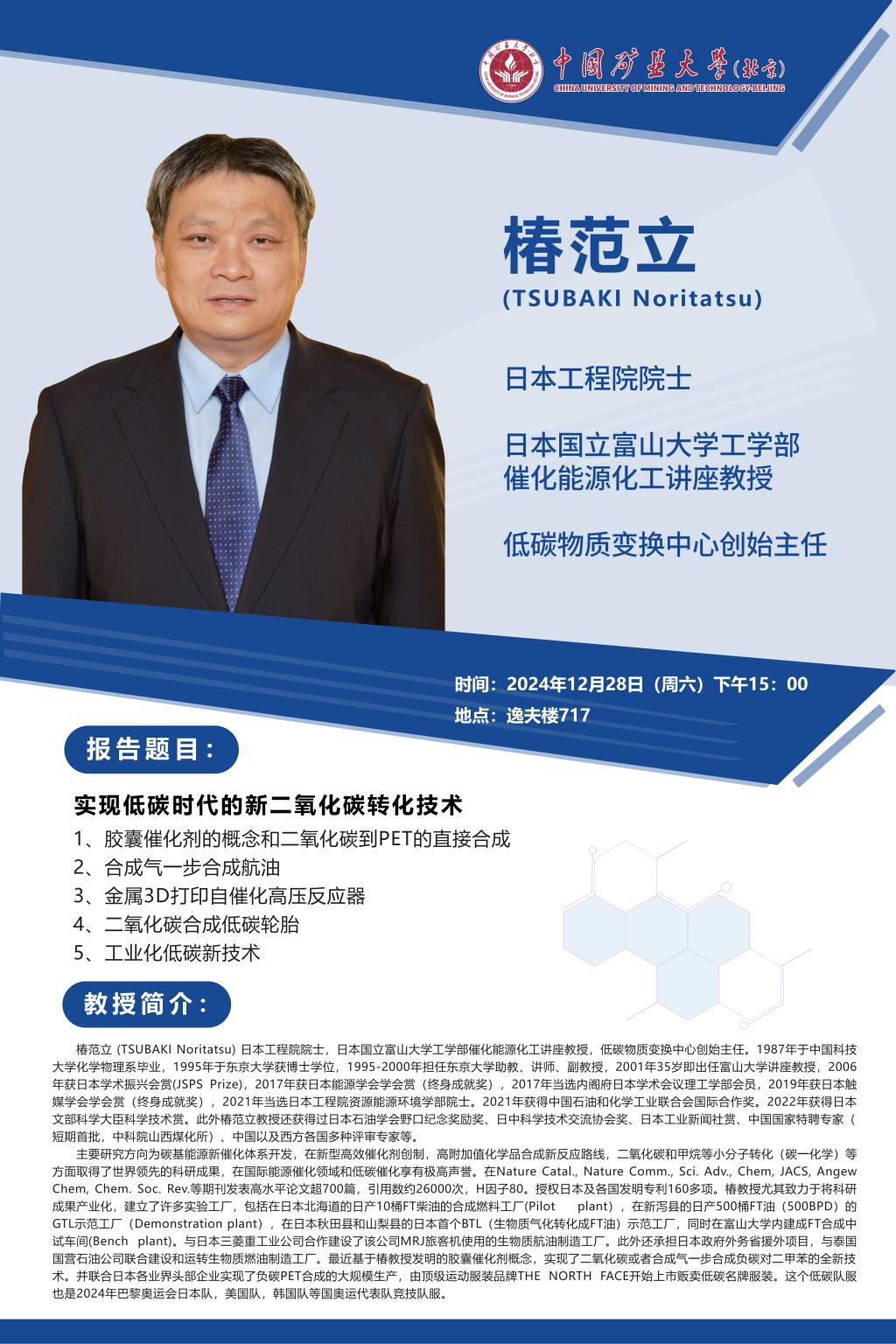日本工程院院士椿范立教授《实现低碳时代的新二氧化碳转化技术》学术报告会