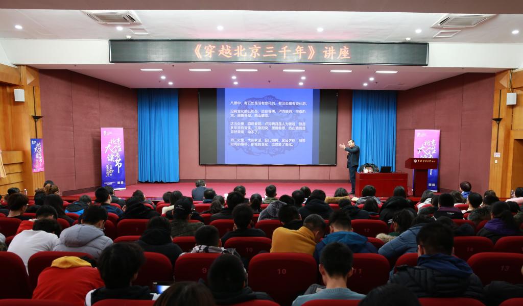 为深入学习贯彻习近平新时代中国特色社会主义思想,特别是习近平总书记关于教育的重要论述,认真贯彻落实全国教育大会、全国高校思想政治工作会议和学校思想政治理论课教师座谈会精神。12月20日下午,在我校交流中心报告厅,我院和图书馆共同举办《穿越北京三千年》讲座。邀请北京市“金牌阅读推广人”岂航老师为化环学院155名学生做报告。学院党委书记赵亮、副书记姜骑山、2017级辅导员何海斌等出席。讲座由图书馆馆长钱晓红主持。