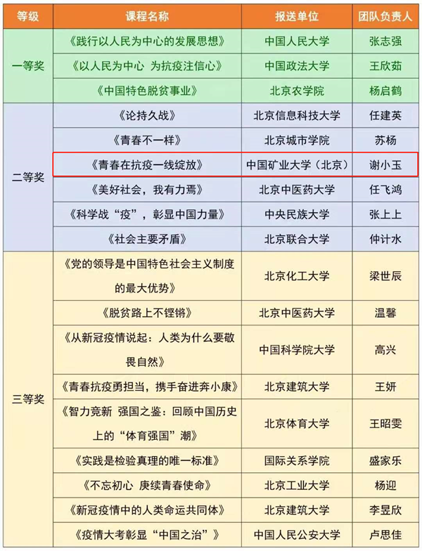 11月11日,“绽放抗疫青春•决胜全面小康”——第四届全国高校大学生讲思政课公开课展示活动评选结果公布,经过专家多轮评审、严格把关,我校选送的公开课展示作品《青春在抗疫一线绽放》荣获北京赛区二等奖。作品由我院环境工程2018-1班本科生谢小玉同学主讲。