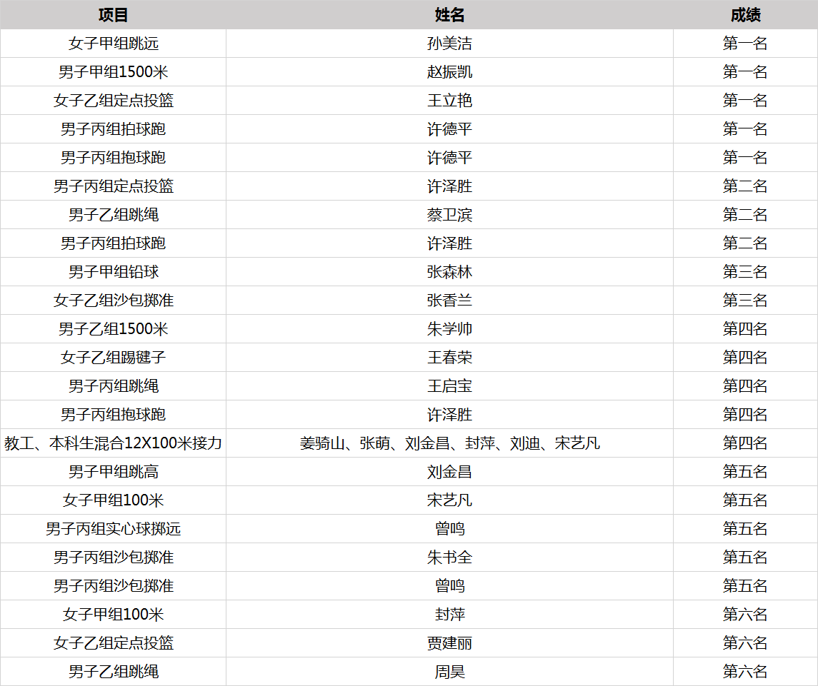 化环学院师生在学校第二十二届运动会上取得佳绩