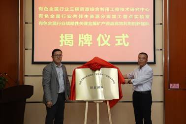 近日,由中国有色金属工业协会和中国有色金属学会依托我校批复成立的“有色金属行业三稀资源综合利用工程技术研究中心”、“有色金属行业共伴生资源分离加工重点实验室”和“有色金属行业战略性关键金属矿产资源高效利用创新团队”科研平台在逸夫科研楼顺利挂牌。三个科研平台的揭牌仪式在本学期已举行,中国工程院院士彭苏萍,中国有色金属工业协会专职副会长兼秘书长、中国有色金属学会理事长贾明星,学校党委常委、副校长王家臣,中国有色金属工业协会科技部部长张龙,学校科学技术研究院院长赵毅鑫共同为科研平台揭牌并就深化合作和实现共同发展进行了深入洽谈。化环学院党委书记赵亮、副院长刘淑琴、副院长王卫东,科研院副院长吴建松,铟锡资源高效利用国家工程实验室(北京)副主任吴伯增、邓久帅、王春来、蒋小平,矿冶科技集团有限公司环境工程研究设计所所长周连碧,广西华锡集团股份有限公司总经理助理、技术中心主任胡明振,西安建筑科技大学副院长卜显忠,广西桂润环保有限责任公司副首席技术官王晓飞,以及学校和兄弟单位的嘉宾共30余人见证了揭牌仪式。