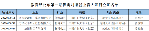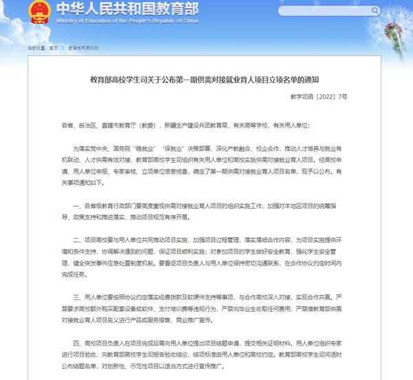4月2日,教育部发布了《教育部高校学生司关于公布第一期供需对接就业育人项目立项名单的通知》(教学司函〔2022〕7号),我校3个项目成功立项。