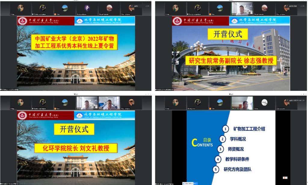 2022716日,中国矿业大学(北京)化学与环境工程学院和研究生院成功举办了2022年(第四届)矿物加工工程系优秀本科生夏令营,来自全国25所高校的57位优秀本科生参加,共安排综合面试4组,上午举行学术讲座4场,下午进行线上综合能力考核及优秀营员评选,各项夏令营活动按计划有序开展并圆满完成。