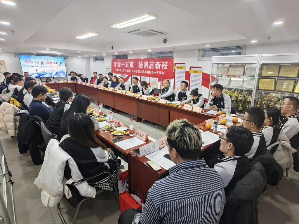 围绕“矿缘十五载·扬帆启新程”的主题,校对外联络与合作处副处长崔艳娜代表学校校友会致辞,并介绍活动的主题和目的;校保卫处处长、时任化环学院08级本科矿物加工专业班主任姜骑山对校友进行了欢迎以及慰问向长期以来关注和支持学院事业发展的广大校友表示感谢;化环学院副院长、时任化环学院08级本科环境工程专业班主任王建兵老师从人才培养、学科建设、师资队伍等方面介绍了学校近年来的发展情况以及取得的各项成绩;化环学院副教授、时任化环学院08级本科生物工程专业班主任王立艳老师希望校友们将自己的成长与母校的发展联动起来,关注学院的教育教学事业动态,共同营造母校助推校友和母校的合作共赢发展态势;化环学院讲师、时任化环学院08级本科化学工程与工艺专业班主任袁振老师期待校友们有空常回家看看,呼吁校友们为学院发展建言献策,推动学院与校友同发展、共进步;校研究生院副院长、学科办副主任、时任化环学院08级本科辅导员卢瑶表示校友是学校高质量发展的见证者、参与者和推动者,学校始终关注着校友的成长进步,期待能与更多的校友企业开展形式多样的合作,共同推进高水平一流应用型大学建设。会上,校友们逐一介绍了毕业后个人发展情况,感恩当年在母校打下的扎实基础成就了自己的事业。交流期间,校友们围绕校企合作、人才培养等方面展开讨论,希望能够为学校高质量发展贡献自己的一份力量。