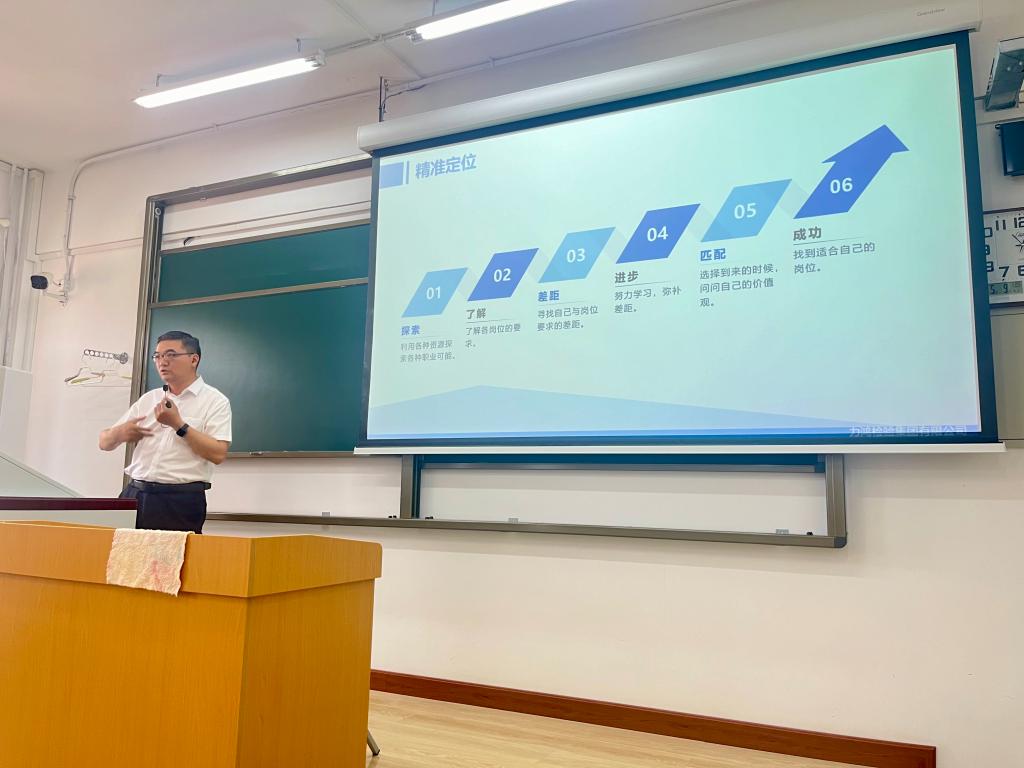 蒋海文总经理长期从事上市、信息化、标准化、招聘等工作,对大学生职业生涯规划、就业等有丰富的经验。本次授课内容细致详实,讲解生动活泼,多角度、全方位、立体式地为同学们诠释了一个真实、生动的工作世界,更加深了同学们对专业的理解,课堂气氛热烈。帮助同学们进一步坚定专业自信,了解真实的就业前景,为未来发展规划奠定坚实基础。