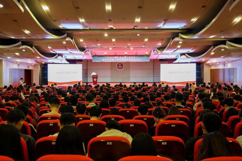 校党委组织部部长杨大鹏宣读了学校党委批复。学院党委书记赵亮代表上一届学院党委作题为《踔厉奋发求进取,砥砺深耕担使命——奋力推进化环学院各项工作高质量发展》的工作报告。报告明确了本次大会的主题,对四年来学院的人才培养质量、师资队伍建设、学科发展和科技创新能力等方面取得的成果进行了全面总结回顾,阐明了当前面临的新形势,并结合学院发展定位,明确了今后的工作目标。在新的发展机遇下,学院党委将认真落实党委主体责任,全面加强党建工作,使党的建设与学院中心工作紧密融合、协调推进,各项事业取得实质性进步,为建设世界一流能源科技大学贡献化环力量。