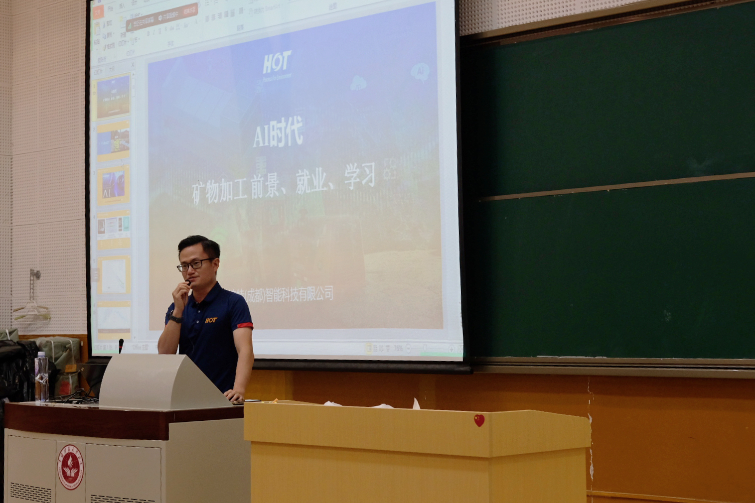 黄恒老师还就矿物加工专业学生的职业发展提出了宝贵建议。他强调,扎实的专业基础和多语言能力是未来职业成功的关键,尤其是在国际化矿业公司中,语言能力是沟通合作的重要桥梁。他鼓励学生们在全球化的矿业环境中拓宽国际视野,同时注重数字化技术的学习,以适应未来对技术复合型人才的需求。特邀嘉宾朱丹先生则从企业视角分享了矿物加工行业的就业前景和技术创新。他认为,AI等新兴技术的融入为矿物加工行业带来了无限的发展潜力,强调行业对专业化、复合型人才的需求正在增加,鼓励学生们勇于探索、创新思维,充分利用校企合作机会培养实践能力。