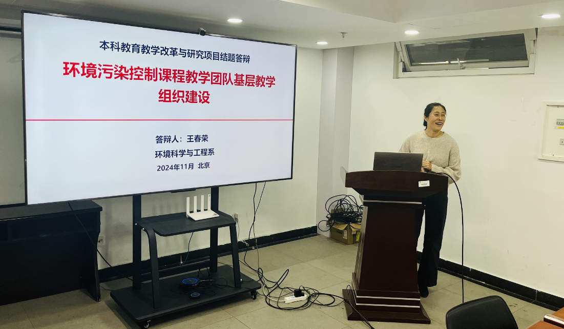 王春荣介绍专项项目《环境污染控制课程教学团队基层教学组织建设》的建设情况