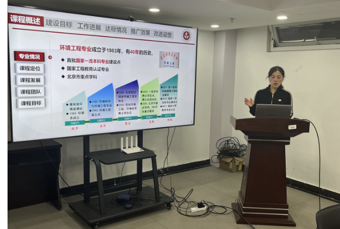 侯嫔介绍重点项目《水处理工程2(双语)线上线下混合式一流课程建设》的建设情况