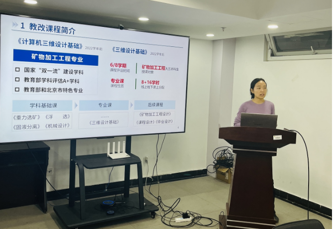 封萍介绍重点项目《计算机三维设计基础线上线下混合式开放课程建设》的建设情况