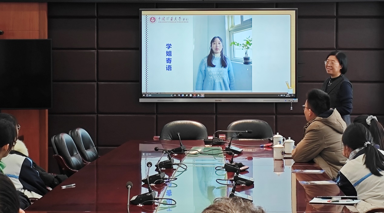 最后,于彩虹播放了我院环境工程专业21级本科生、成都铁路中学18级高中生文思对学弟学妹们的寄语,对成都铁路中学近年来为中国矿业大学(北京)输送的大批优质生源表示衷心感谢,希望同学们继续关注和报考中国矿业大学(北京)。本次活动得到了成都铁路中学老师和学生的密切关注和积极好评。