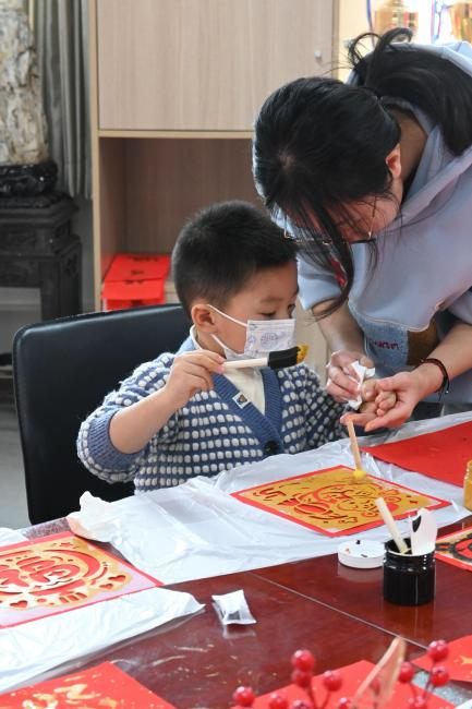 拓印时光痕迹深,宛如记忆永留存。老师们和孩子们使用拓版、宣纸、墨水、刷子等工具,覆纸、敲打、上墨,在新年里拓印“幸福”!