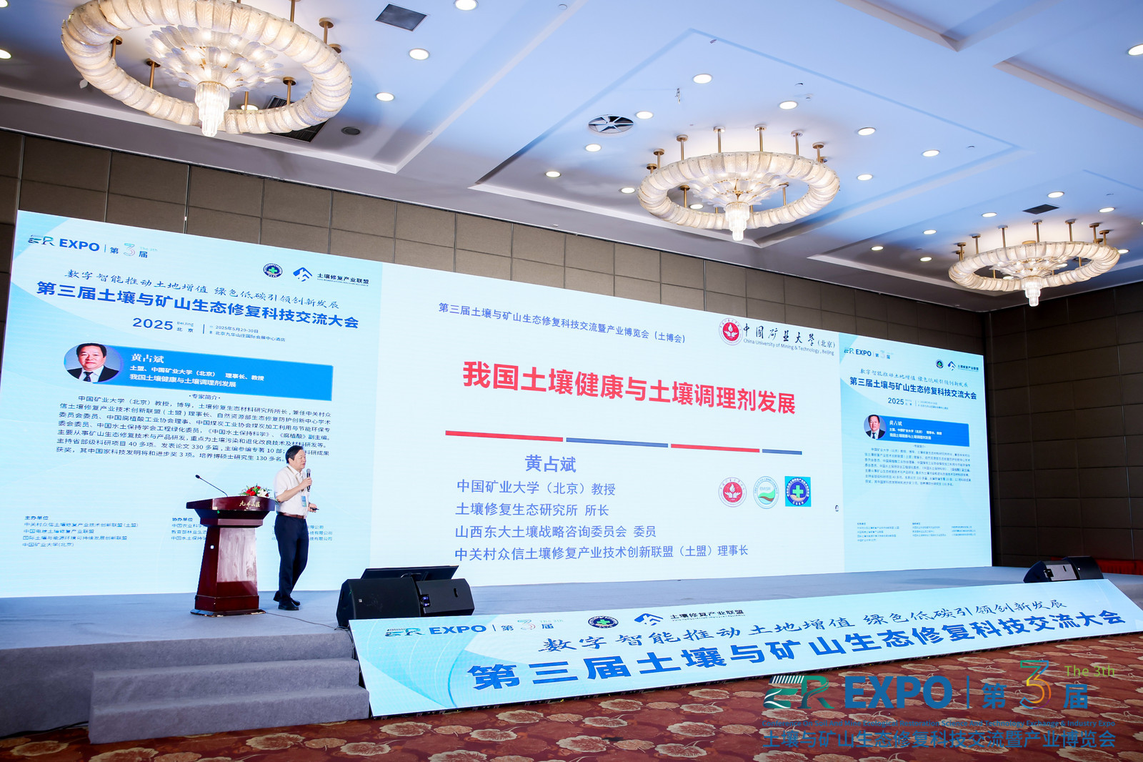 2025年5月29-30日,我校参与主办的“第三届土壤与矿山生态修复科技交流暨产业博览会”(简称“土博会”)在北京九华山庄国际会展中心酒店开幕。大会由中关村众信土壤修复产业技术创新联盟(土盟)、中国电建土壤修复产业联盟、国际土壤与能源环境可持续发展创新联盟和我校联合主办。