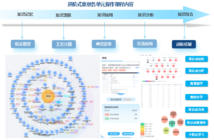 ②采用五步认知重构教学内容,匹配学生认知水平; 利用知识图谱技术,将教学资源和教学内容进行深度整合,形成系统化的知识网络,通过建立系统的知识框架和高效的学习路径,实现智能导学,降低学生的畏难情绪,助力学生自主学习、个性化成长,提效率、夯基础,释放学生创新潜能