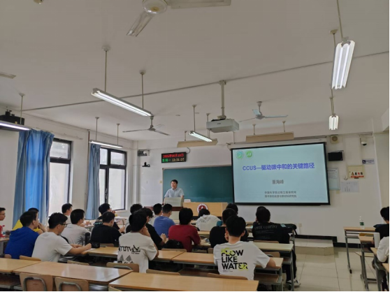 为进一步深化教育教学改革,充分发挥“科技矿场”四位一体作用,全面推进产教深度融合,化环学院22 级碳储科学与工程专业的课堂迎来了一场别开生面的学科前沿课程。化环学院特邀“科技矿场”—中国科学院过程工程研究所的董海峰、张军平、黄玉红三位校外导师走进课堂,为同学们带来了关于二氧化碳捕集转化利用领域的精彩授课,让学子们近距离接触行业前沿动态。