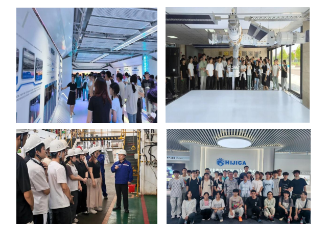 在航天院中,专家讲解了航天院的发展历程及主要生产方向,带领学生们参观了各种航天设备、厂区模型以及制氢生产模型,展示了航天领域的创新成果。进入企业生产一线,实地参观实验制氢中试装置,同学们驻足聆听、观察问询。在爱彼爱和新材料有限公司,学生们见证了气凝胶材料的工业化奇迹,参观了由气凝胶制成的多种应用产品。